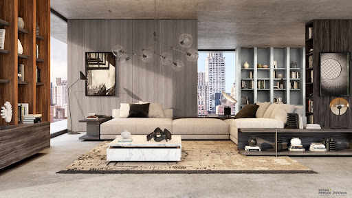 Adding a statement piece like a velvet sofa, a soft rug, and decorative pillows brings out the warmth and comfort one hopes to achieve during the colder months.